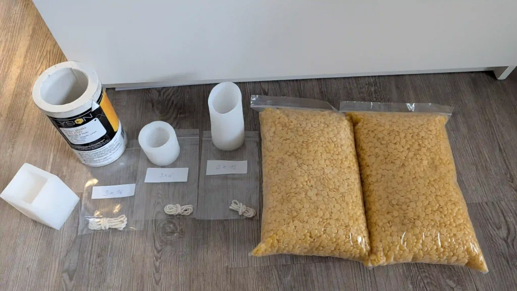Das Gießen von Bienenwachskerzen ist ein lohnendes Handwerk. Die Grundausstattung ist überschaubar: Du benötigst Bienenwachs (am besten in Pastillen- oder Blockform) , hitzebeständige Silikon-Gießformen , einen passenden Kerzendocht und einen Schmelztopf.